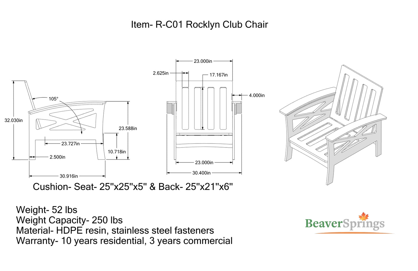 This Rocklyn Club Chair features a strong plastic frame with unique geometric side panels and supportive cushions for comfortable outdoor lounging. Its modern design adds a stylish, standout touch to any patio or backyard setting.