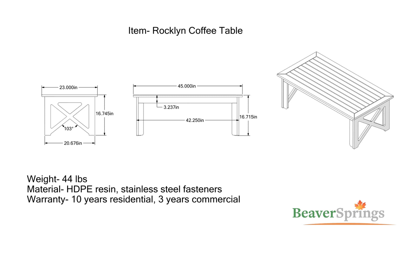Order this heavy duty Rocklyn Coffee Table to complete your seating set. Stylish and built to last the outdoor elements, while adding extra space for yourself and your guests.